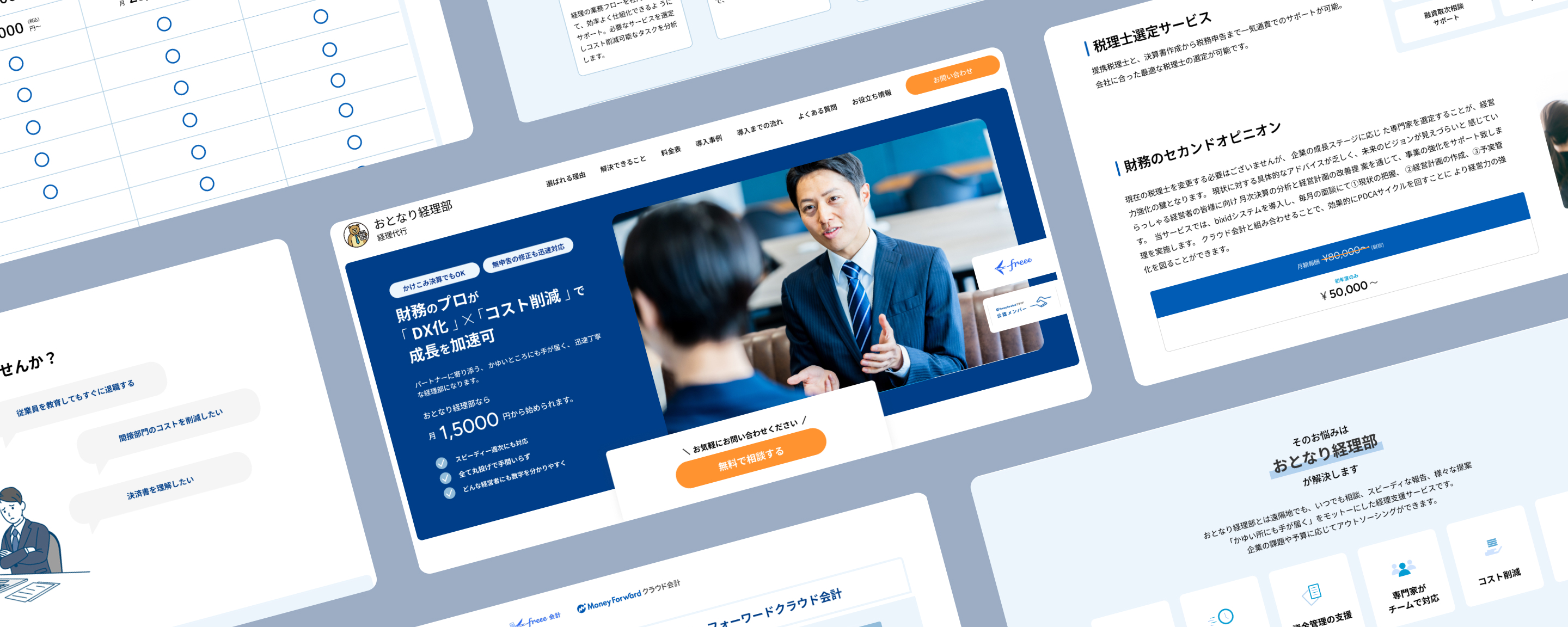 - 経理業務に悩む人の気持ちに寄り添う視点で構成を設計。 不安 → サービス内容 → 導入メリット → 事例・FAQ → 相談導線 の流れで、 “自分の悩みかもしれない”と感じてもらえるよう意識しました。 強みや効果は図や写真で可視化し、導入事例とよくある質問で安心感を補強。 最後まで読み進めた際に、自然と「相談してみよう」と思える流れを意識しています。