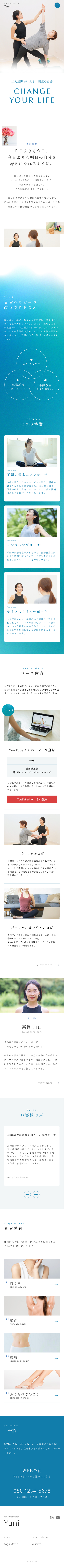 治療特化型ヨガセラピーを導入するインストラクターのサイトを新規制作。 肩こりや腰痛などの不調改善、メンタルケア、ライフスタイルサポートまで幅広く対応し、 「ヨガにハードルを感じる人でも続けられる」安心感と信頼感を軸に構築しました。